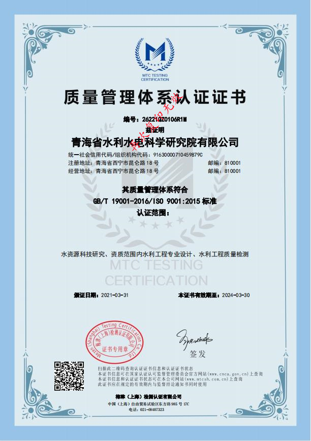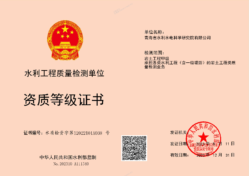 • 水利工程質(zhì)量檢測單位資質(zhì)等級證書(量測類)